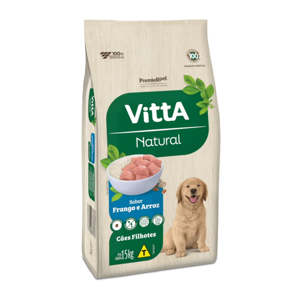 A linha Vitta® Natural é formulada com proteínas de alta qualidade e é enriquecida com todas as vitaminas e minerais necessários para que os cães vivam saudáveis e felizes. Elaborado com ingredientes naturais e cuidadosamente selecionados, o produto Vitta® Natural Filhotes Frango e Cereais Integrais, além de muito saboroso, não possui corantes e aromatizantes artificiais. Promove também a saúde intestinal dos filhotes, através da associação de fibras naturais com prebiótico. Todos os cuidados necessários para um desenvolvimento pleno e saudável.